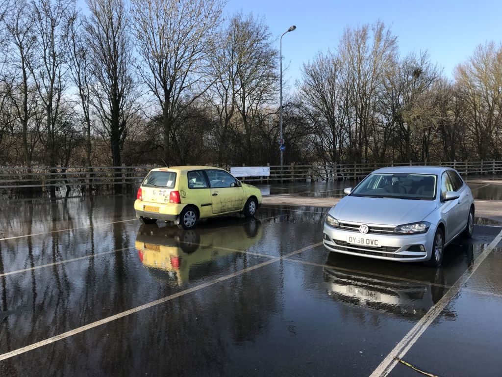 Cars standing in flood water at Seacourt P&R